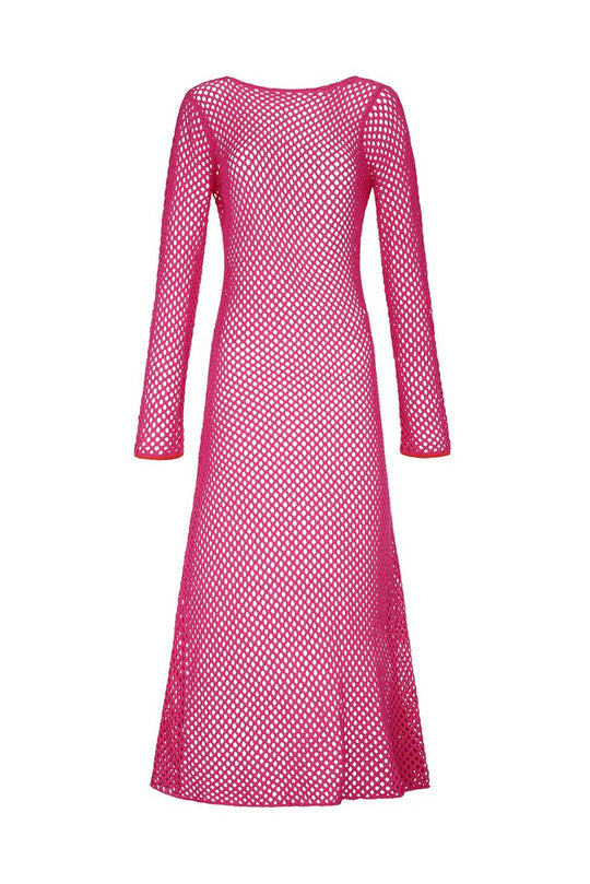 Crochet U-Back Maxi Dress Hot Pink