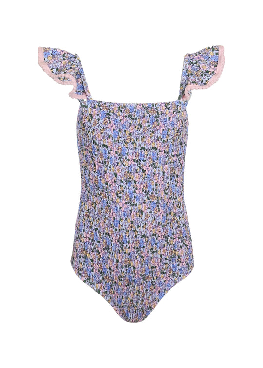 Flower Power Purple Smocked One Piece Swimsuit
