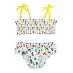 This Girl's Floral Bikini Set in White by Stella McCartney Kids is the sweetest addition to your little one's swimwear wardrobe! Crafted from recycled polyamide and elastane, this shirred bikini set is sure to make a statement with its all-over multicolour dreamy floral print. The top features yellow shoulder straps with fixed bows on the shoulders, plus shirred bands that hug her body for a comfortable fit. The bottom features ruffle trims for an extra touch of cuteness. Plus, it has a UPF50+ rating, offering protection from the sun's rays. Get your little one the perfect summer look with this UPF bikini. Show off yours with #StylesBySandDollar