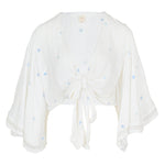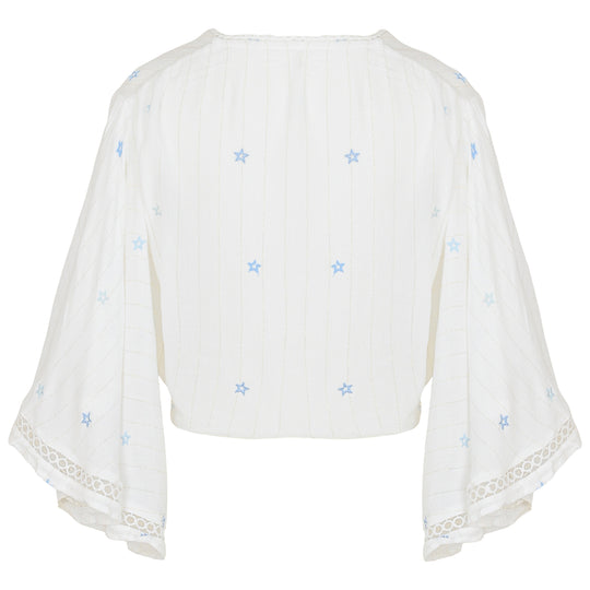 Ivory/Tonal Blue Stars Lurex Stripe Star Crop Top