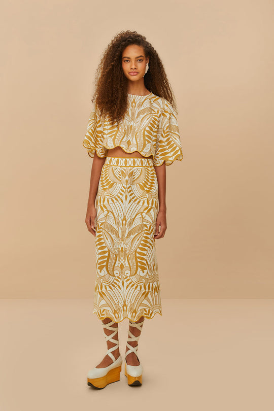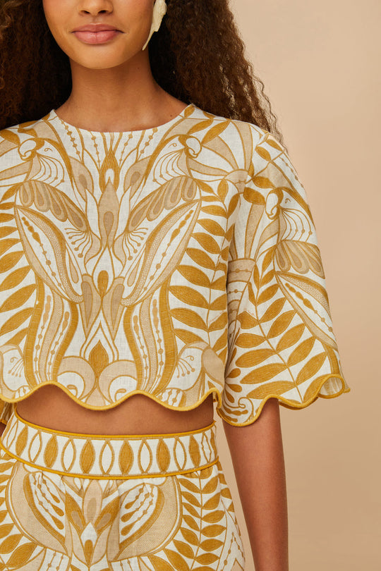 • Leafy pattern in mustard tones