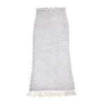 • Take a journey to the Mediterranean with this hand-woven maxi skirt, crafted from natural yarn reminiscent of sea netting. Delight in the intricate details of the hem, adorned with a refined fringe and secured by buttons at the waist. The perfect statement piece for the ultimate vacation look.