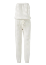 Transform your summer wardrobe with the Stella Jumpsuit in a crisp white from the renowned Melissa Odabash collection. Beyond a simple white bandeau jumpsuit, the Stella design encapsulates elegance and versatility. Crafted with an elasticated neckline and drawstring waist, it ensures a flattering fit for all figures. Accentuated with golden branded cordends, this designer white jumpsuit speaks volumes about your impeccable fashion sense. The elasticated ankle cuffs add an extra layer of sophistication. Join the trendsetters and flaunt your Stella Jumpsuit with the tag #StylesBySandDollar