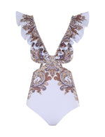 Ottie Ruffle One Piece Purple Paisley