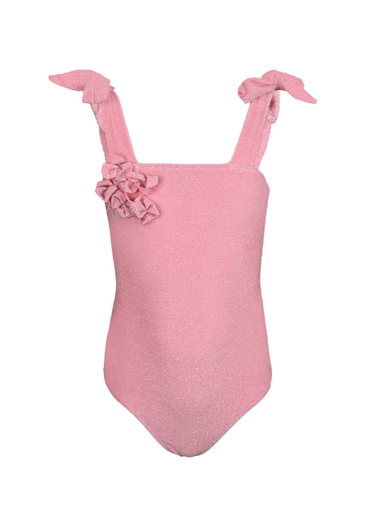 Pink Girls Shimmer Flower One Piece Swimsuit