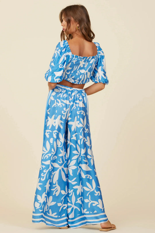 Summer Breeze Print Satin Top Blue