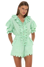 Yelena Scallop Short Playsuit Seersucker Green Apple